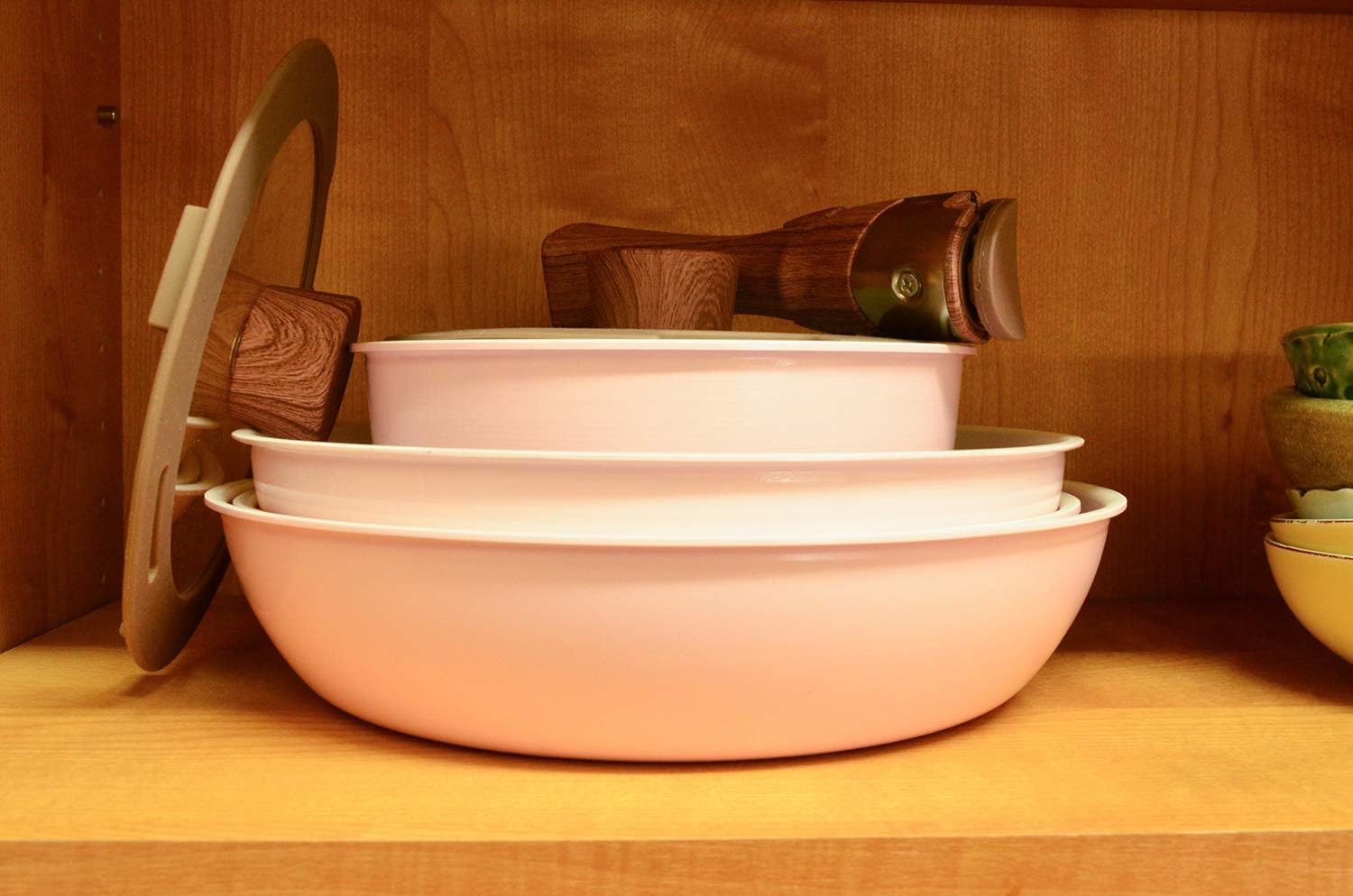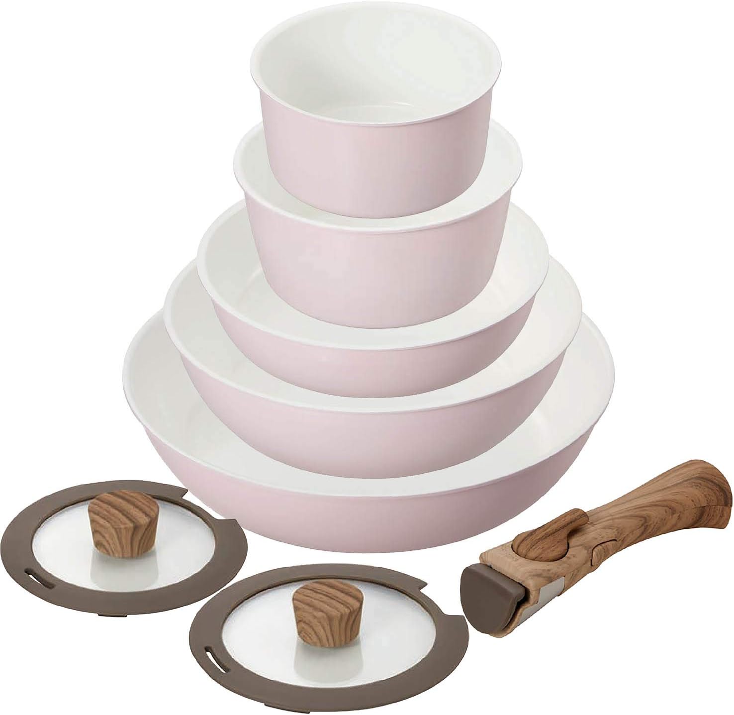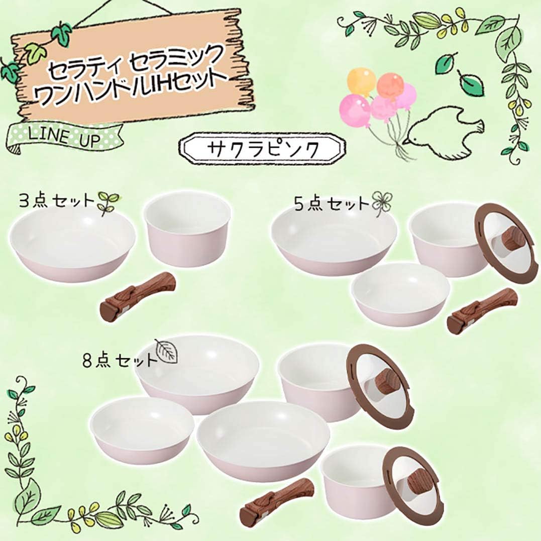 Bestco Frying Pan Pot 8-Piece Set Sakura Pink Cerati Ceramic