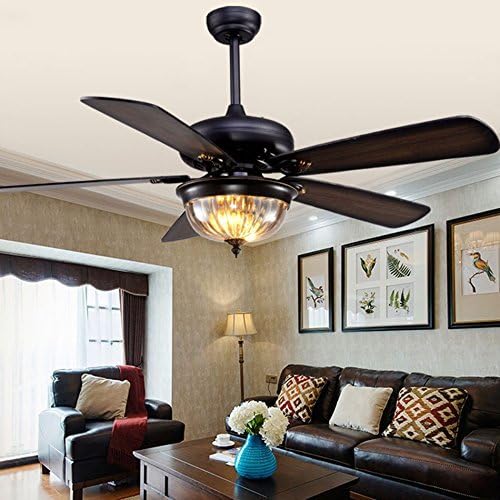NZDY Ceiling Fan Fresh Black Glass/Wood/Round LED